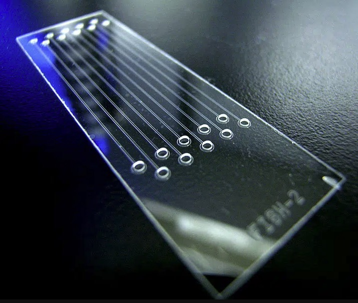 2.石英玻璃:具有低熱膨脹系數(shù)、耐化學(xué)性強(qiáng)、耐高溫(最高可達(dá) 900oC) 、具有優(yōu)異的光學(xué)性能,如均勻性和高紫外線透射率,適用于微流體流動(dòng)池、微反應(yīng)器和紫外分光光度法檢測(cè)的微流控芯片。