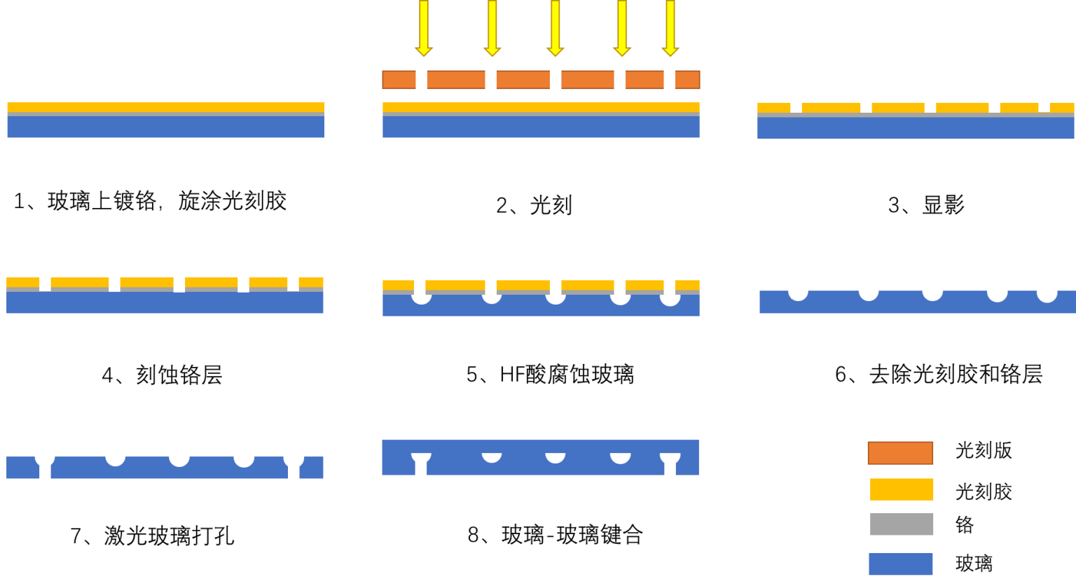 3.深度20um以上用濕法腐蝕,加工效率高,深寬比2:1以上。