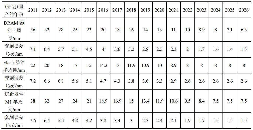 表1 每一個(gè)技術(shù)節(jié)點(diǎn)允許的套刻誤差